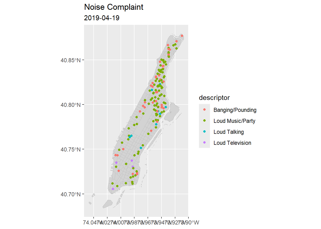 labs(title='Noise Complaint', subtitle = '2019-04-19') +