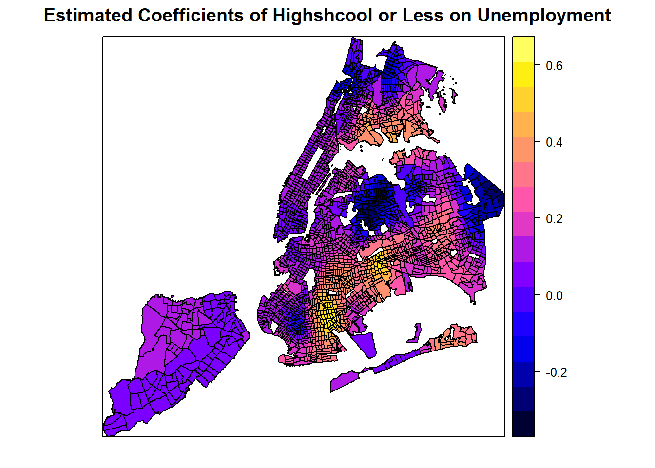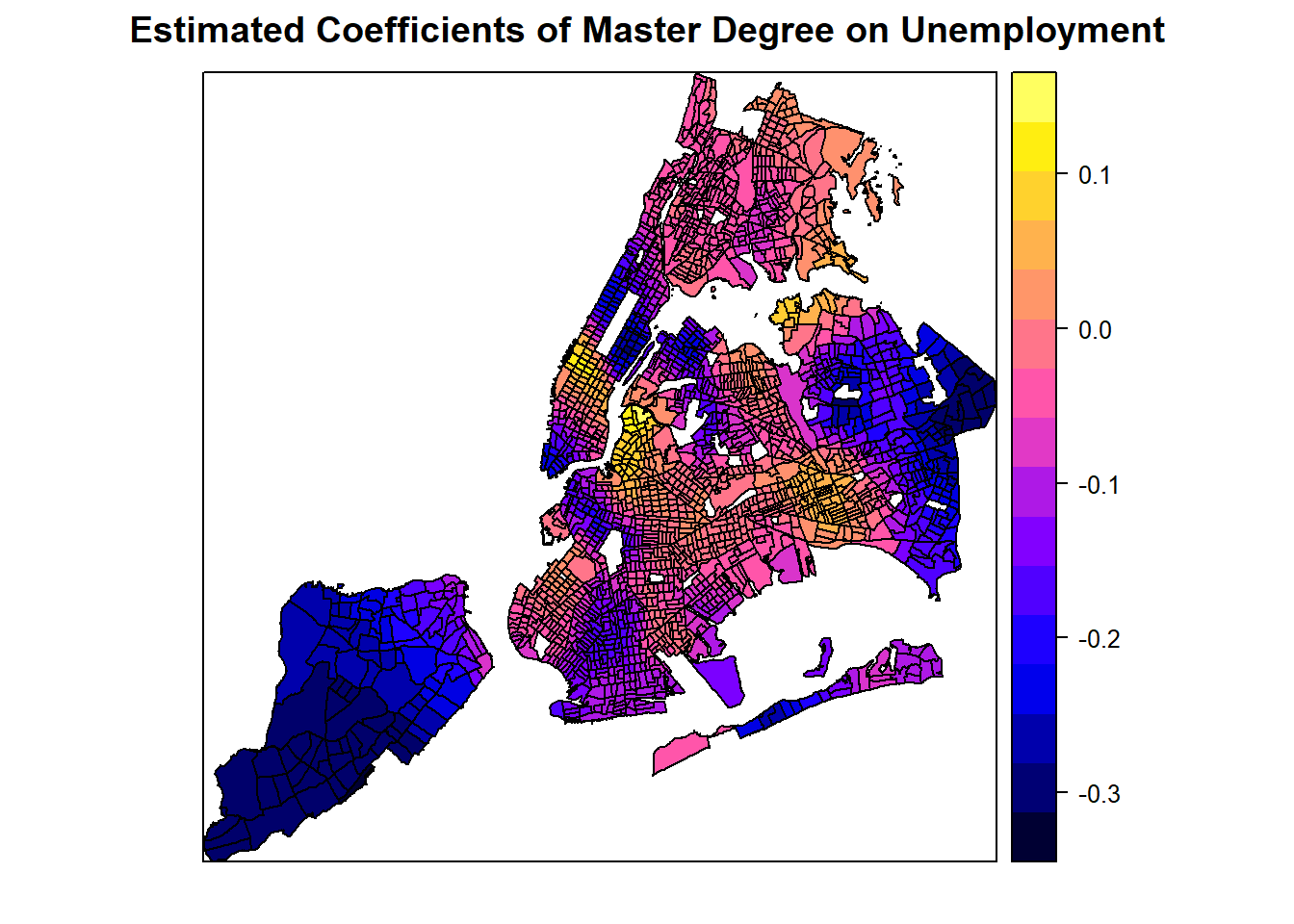 # This show how the coefficients of the master degree on unemplyment change over space.